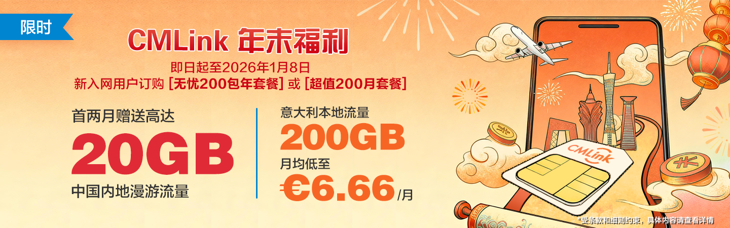1. 套餐多地可用。可在意大利、欧盟地区套餐内容共享,同时赠送漫游中国内地的流量及漫游语音资源。